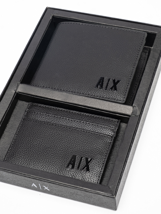 Комплект портмоне и картхолдер черного цвета со структурой под рифленую кожу Armani Exchange