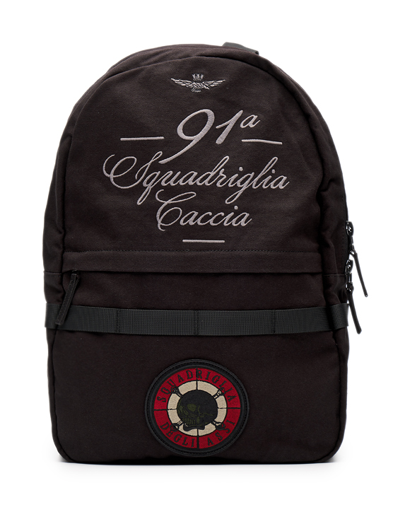 Рюкзак в чером цвете с нашивками бренда Аeronautica Militare
