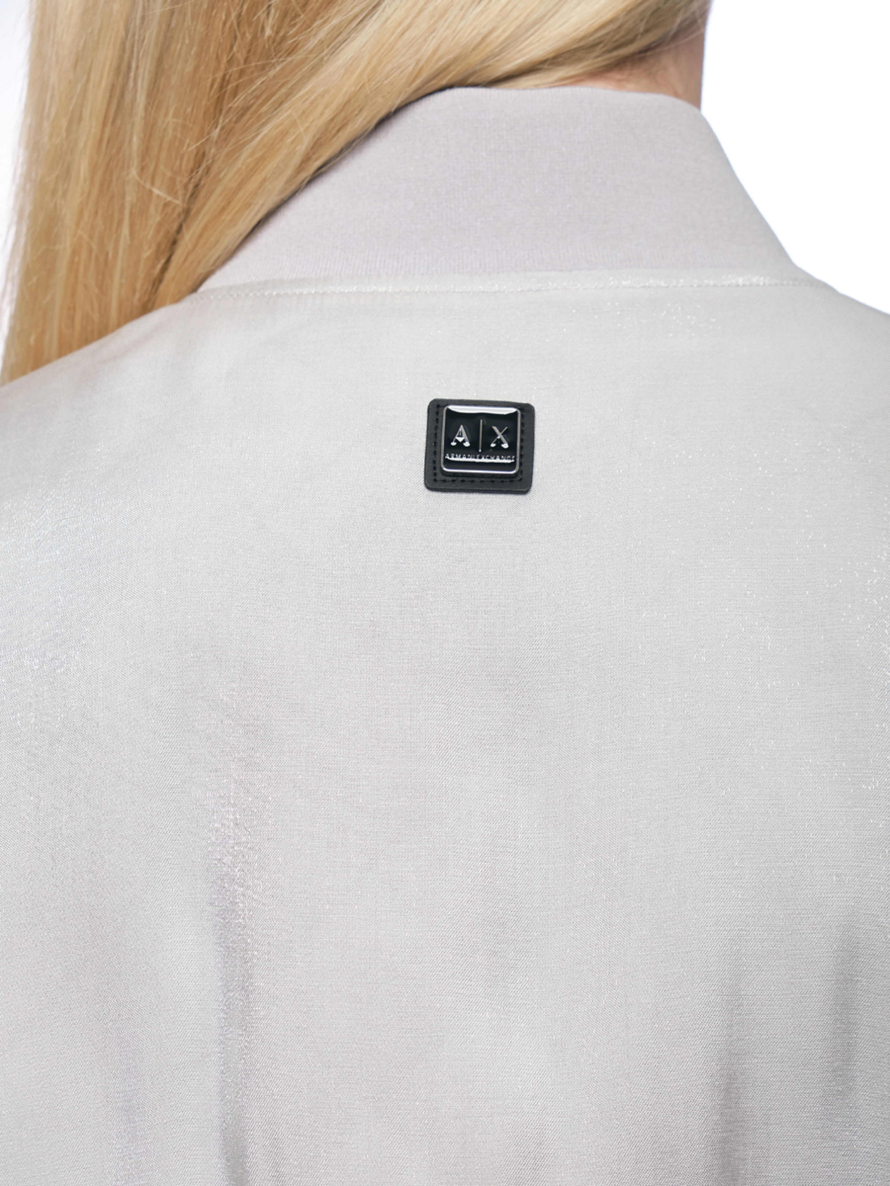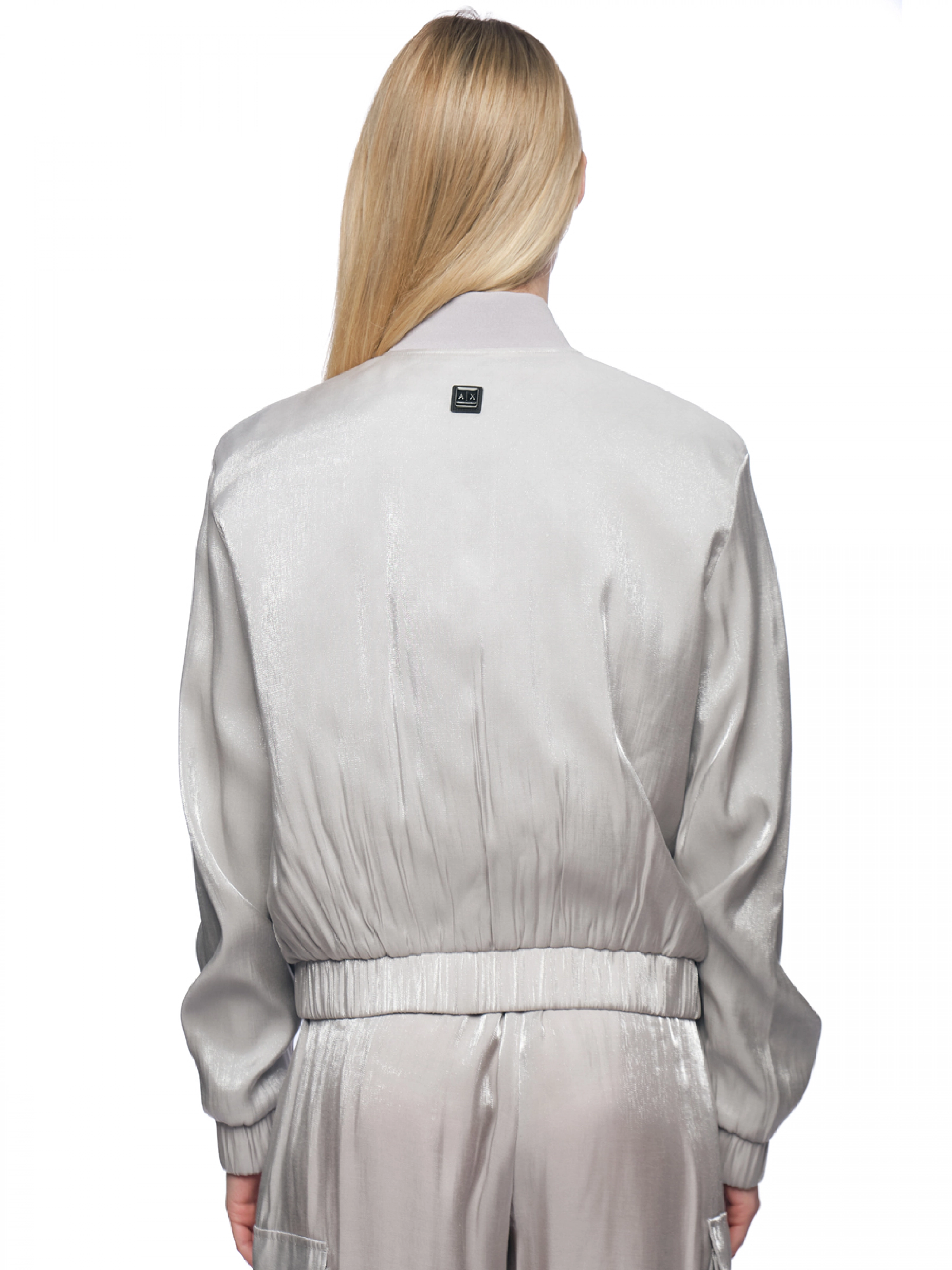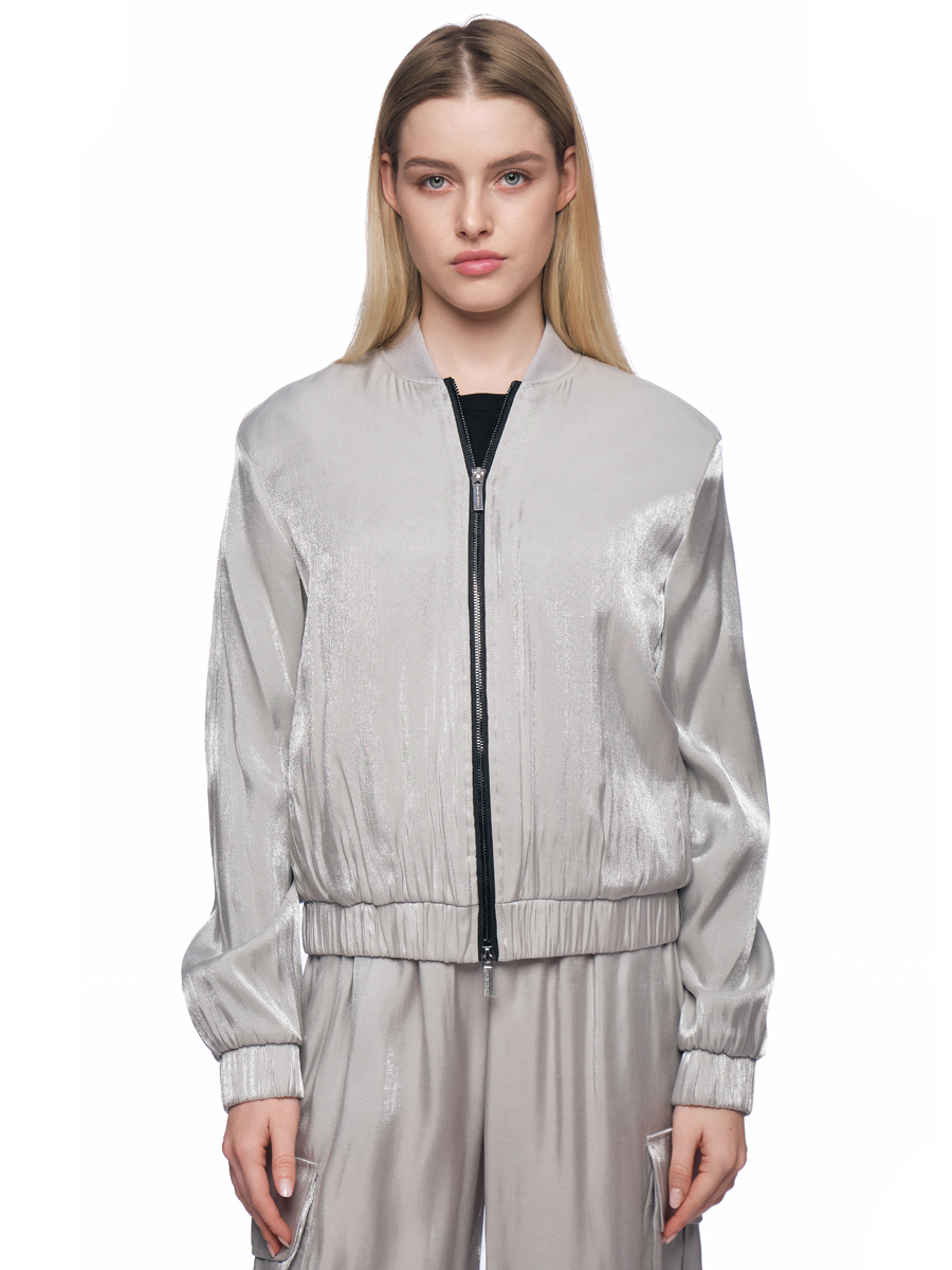 Куртка бомбер в сером цвете с контрастной молнией и резинкой на поясе Armani Exchange
