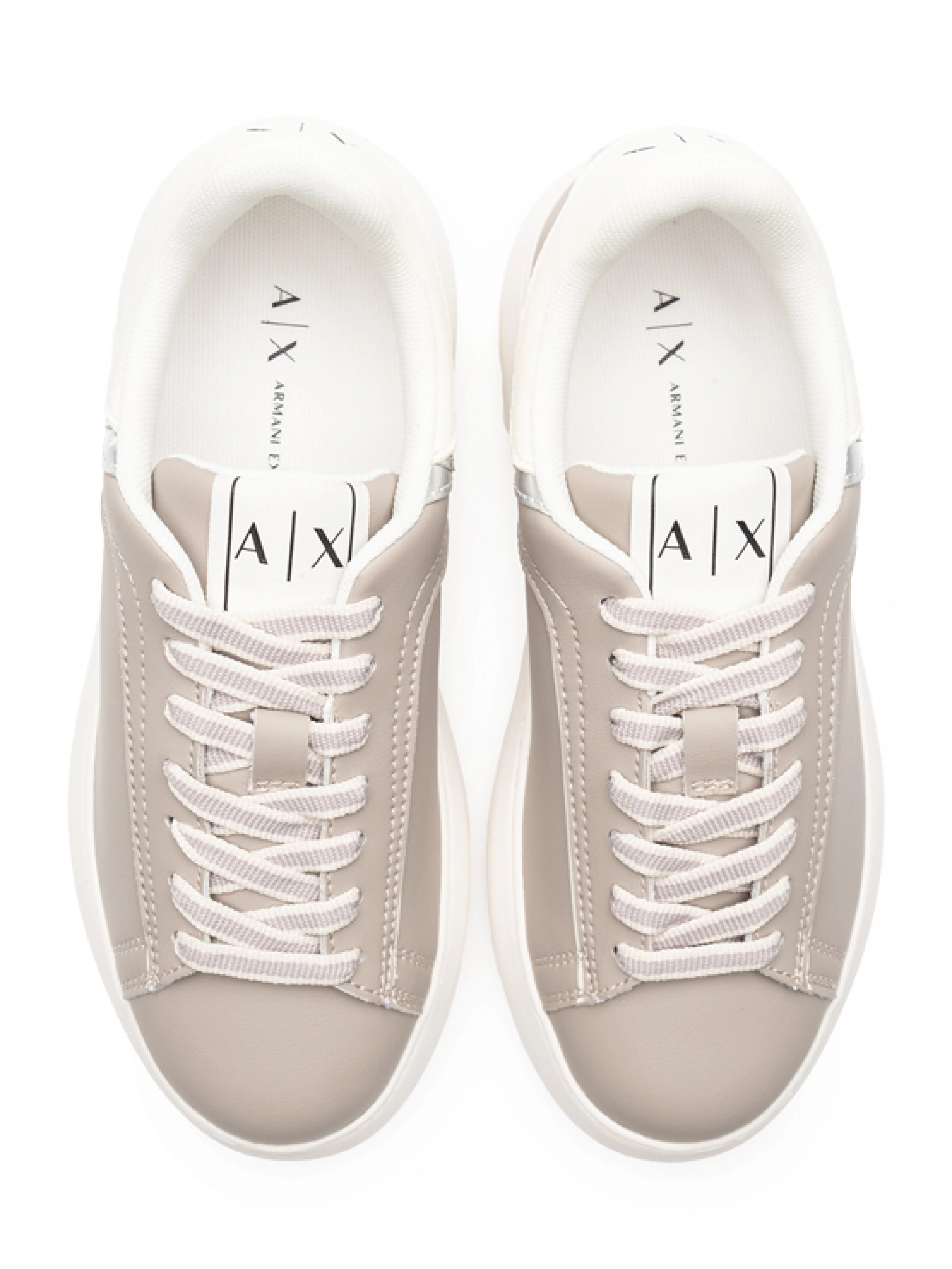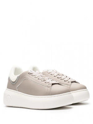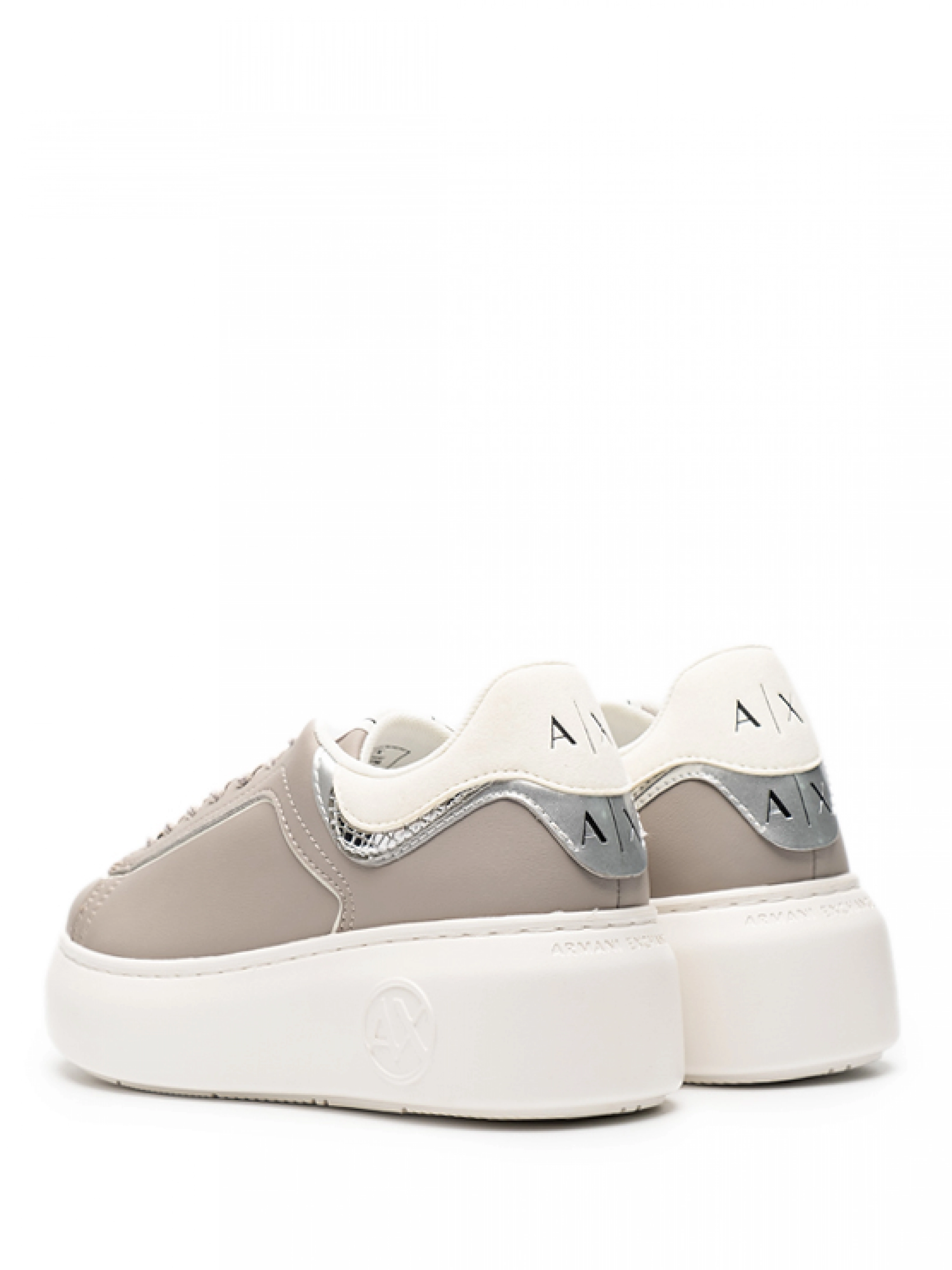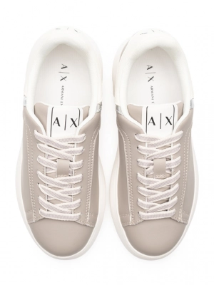 Кожаные кеды бежевого цвета серебристой вставкой и контрастной и на высокой подошве Armani Exchange
