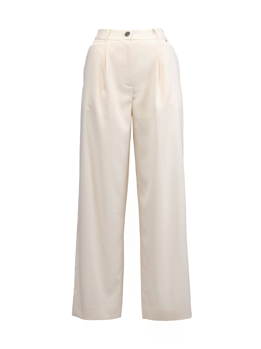 Молочный цвет добавляет образу свежести и легкости, позволяя создавать разнообразные комбинации с другими предметами одежды. Брюки идеально сочетаются с шелковыми блузами, трикотажными топами и легкими жакетами, создавая гармоничный и завершенный образ.