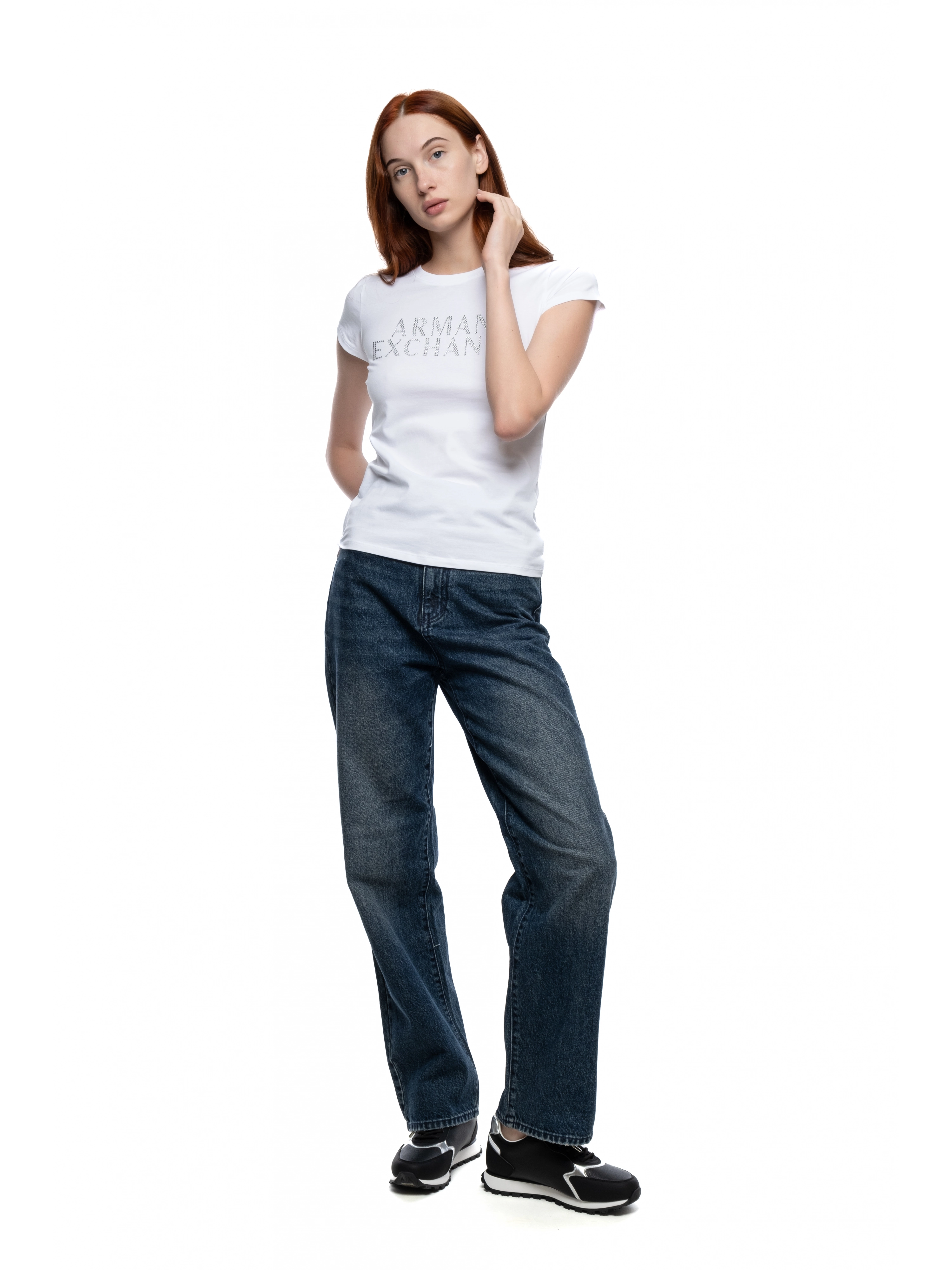 Джинсы в синем цвете Armani Exchange свободного кроя на высокой посадке
