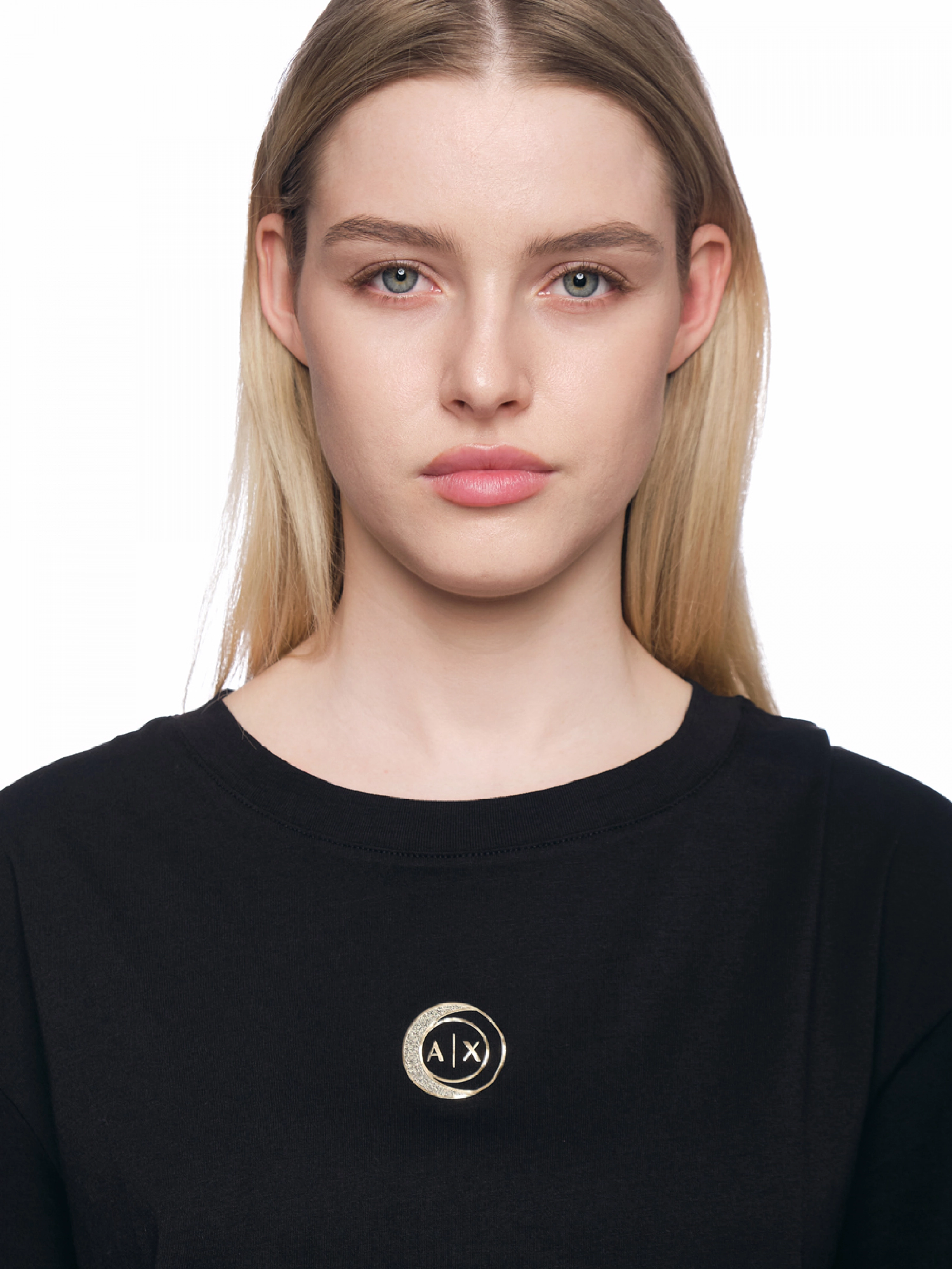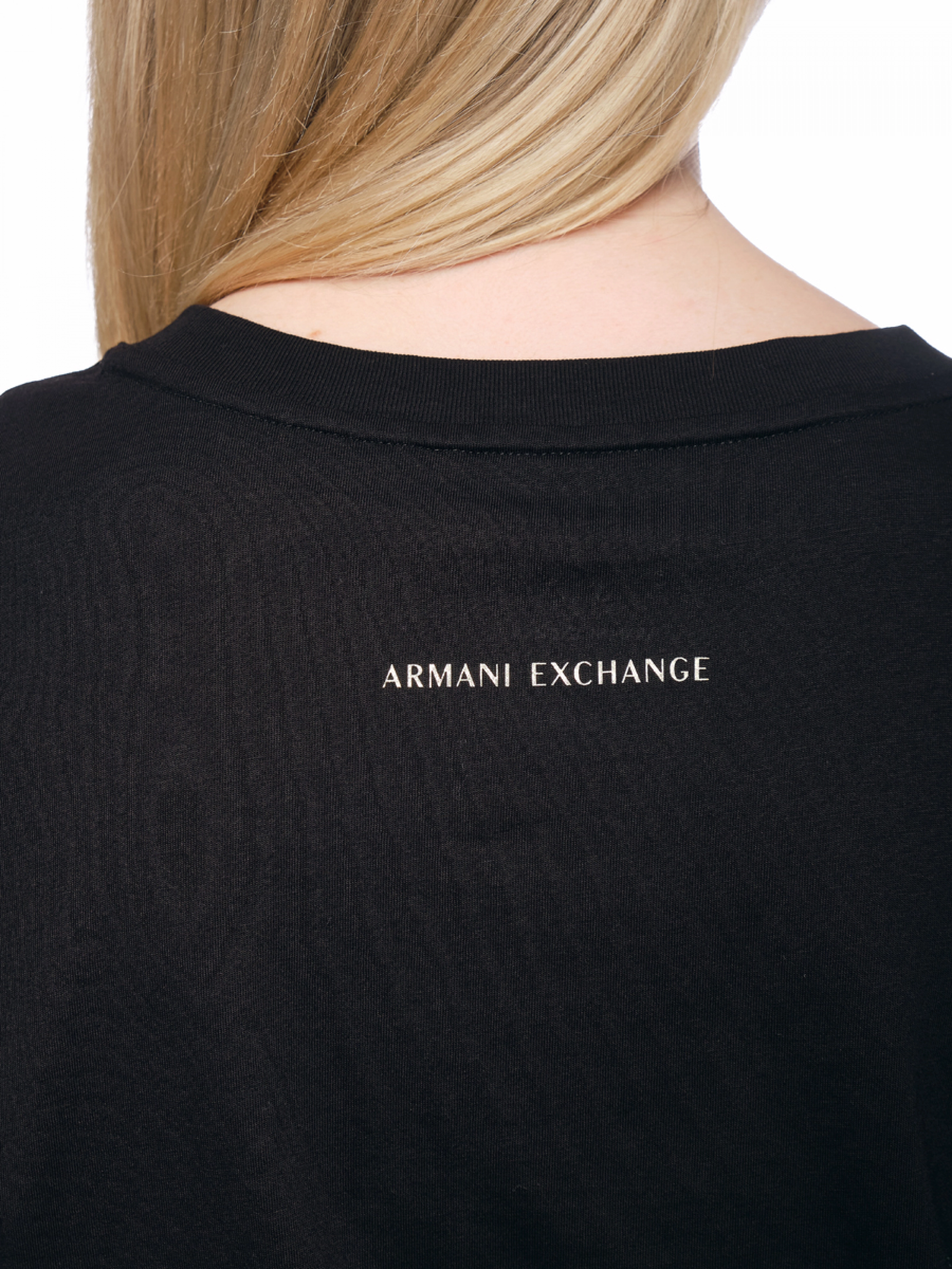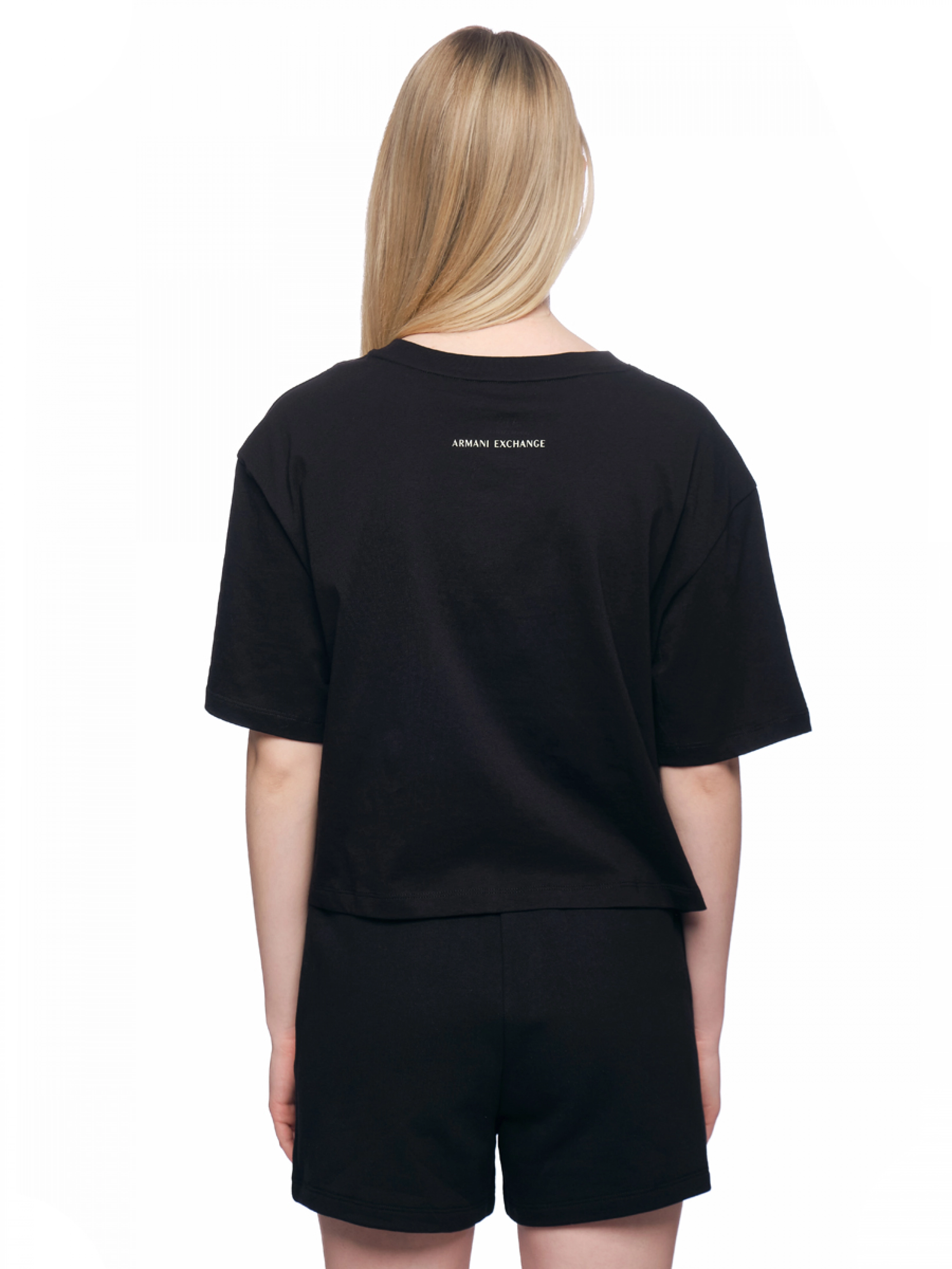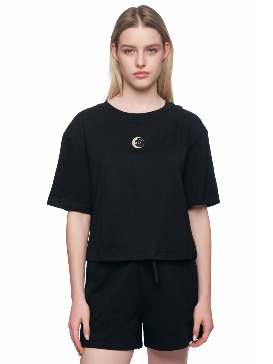 Футболка с круглым вырезом в черном цвете свободного кроя с логотипом Armani Exchange