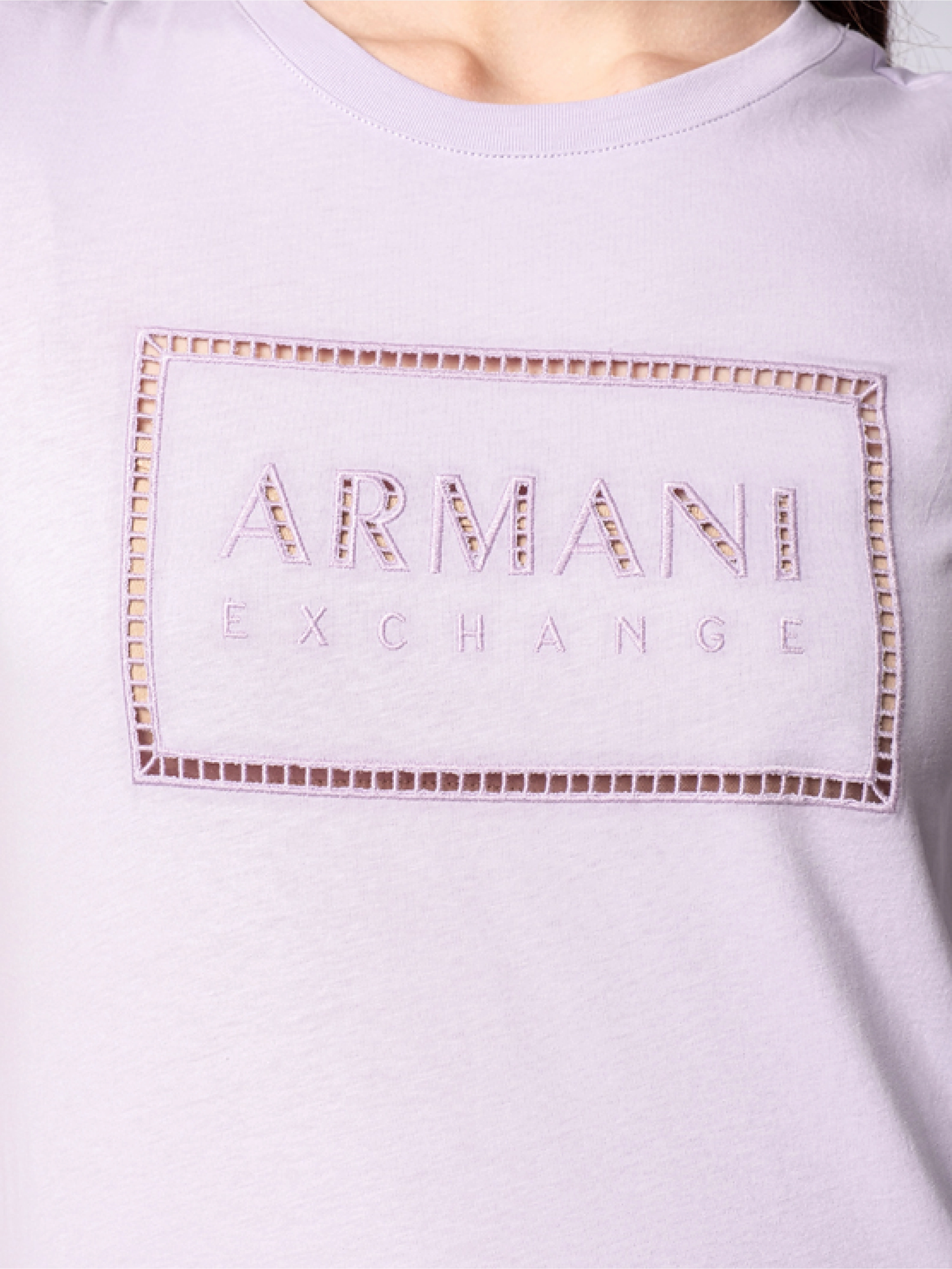 Футболка сиреневого цвета с принтом на груди Armani Exchange