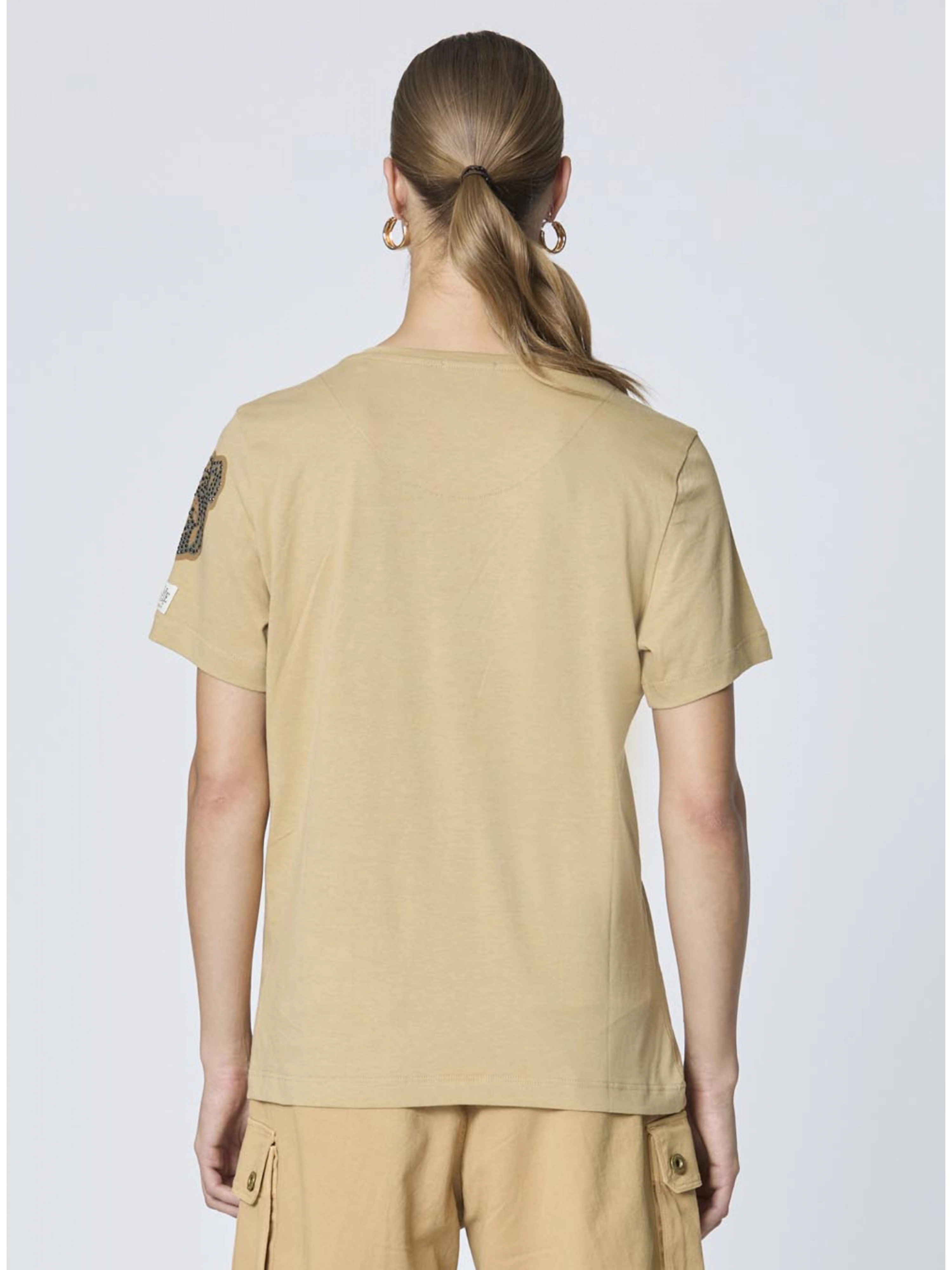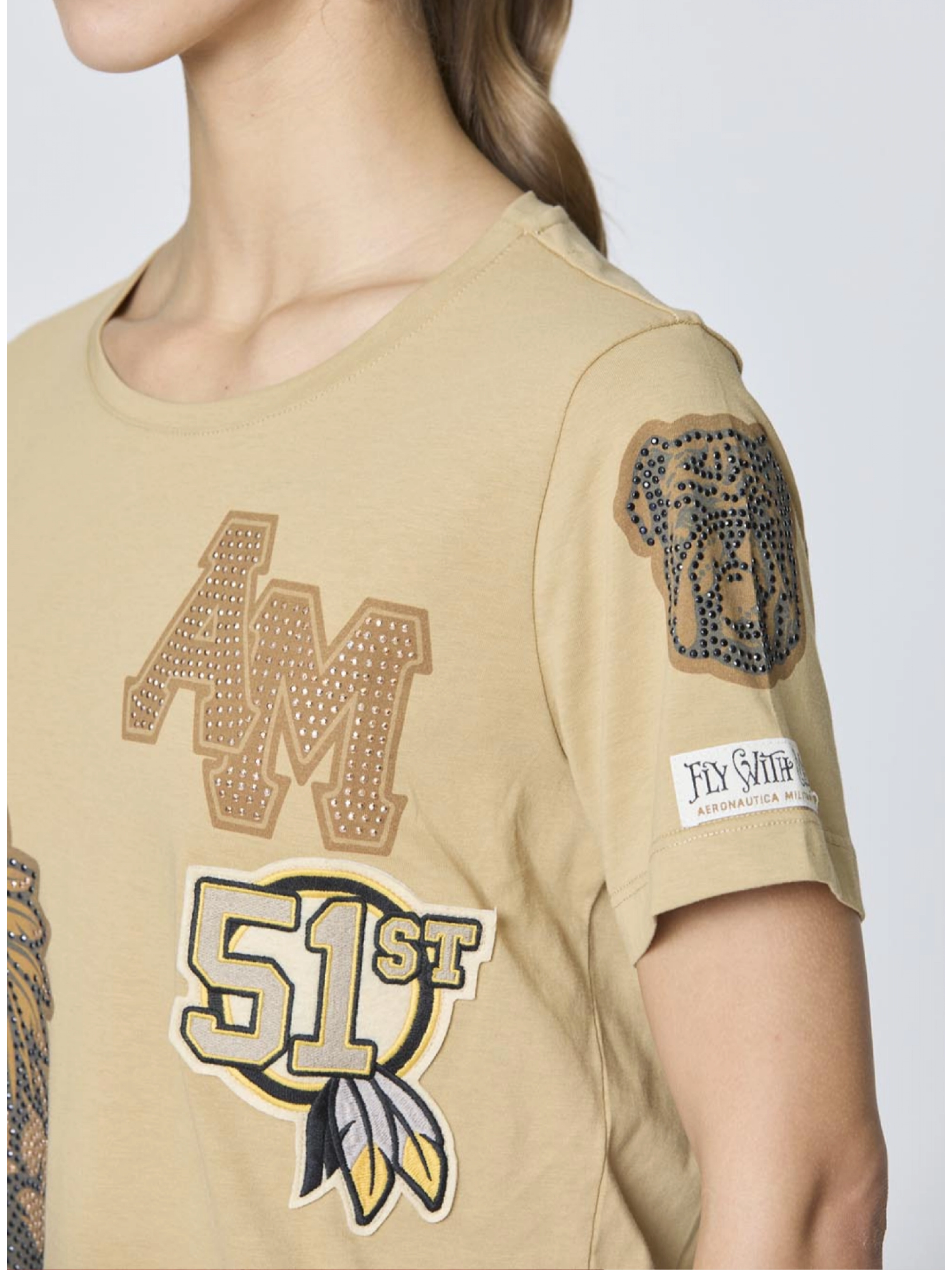 Футболка свободного кроя в бежевом цвете с множеством принтов Аeronautica Militare
