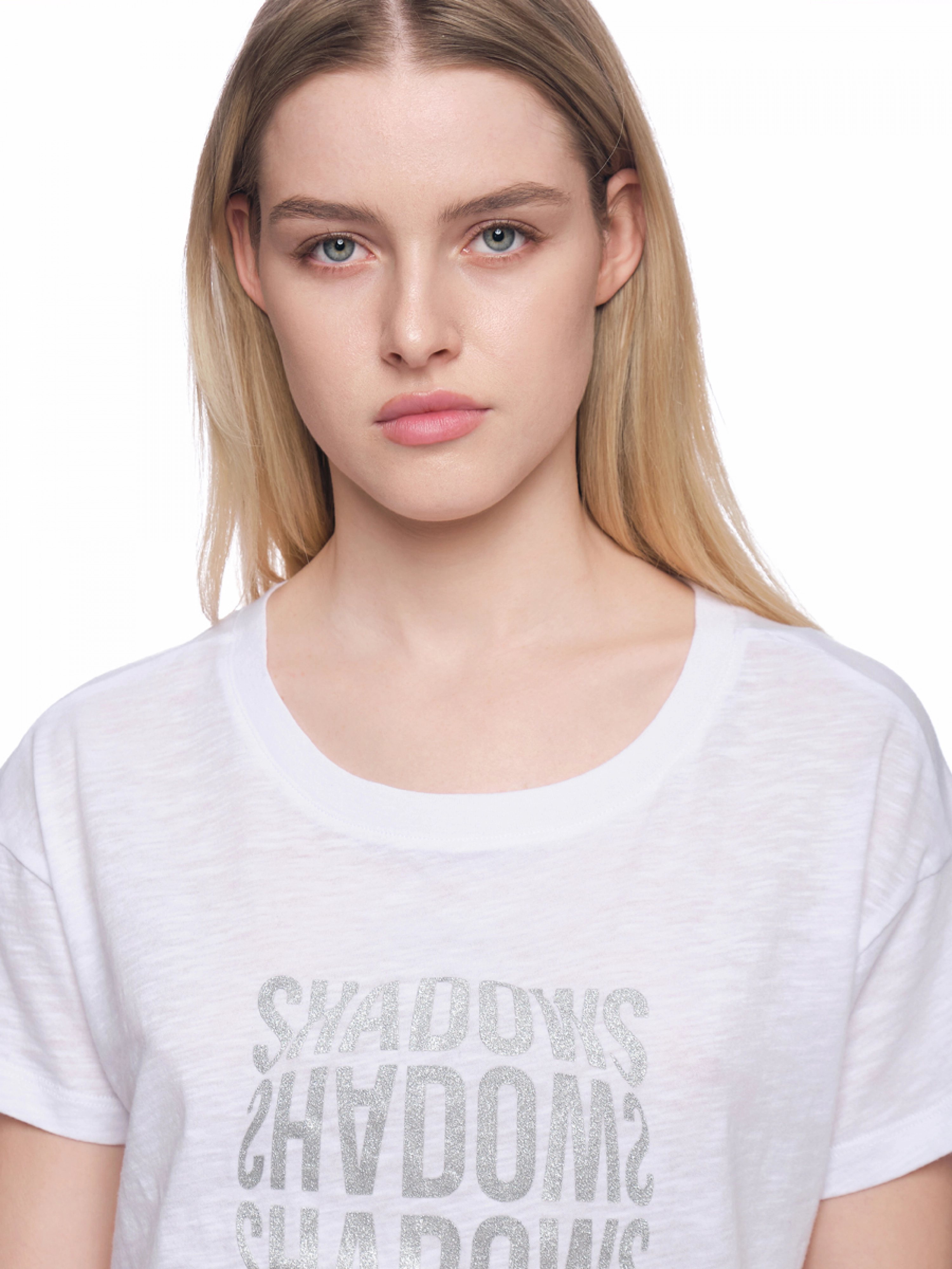 Футболка в белом цвете свободного кроя с принтом на груди Armani Exchange