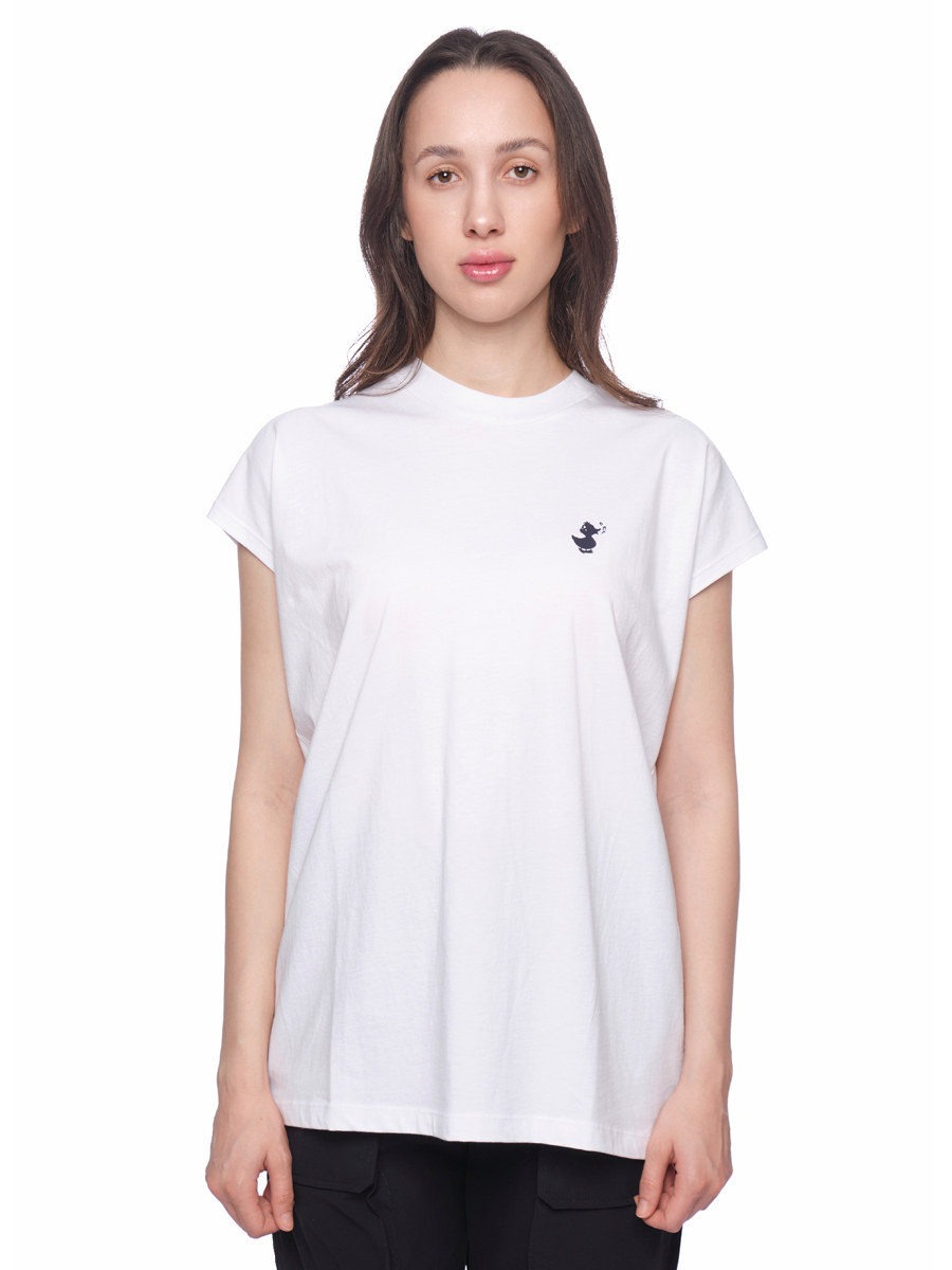 Логотип бренда, размещенный на груди и спине, добавляет узнаваемость и подчеркивает философию бренда, направленную на защиту животных и окружающей среды. Минималистичный дизайн позволяет легко сочетать футболку с джинсами, шортами или спортивными брюками, создавая непринужденный и актуальный образ.