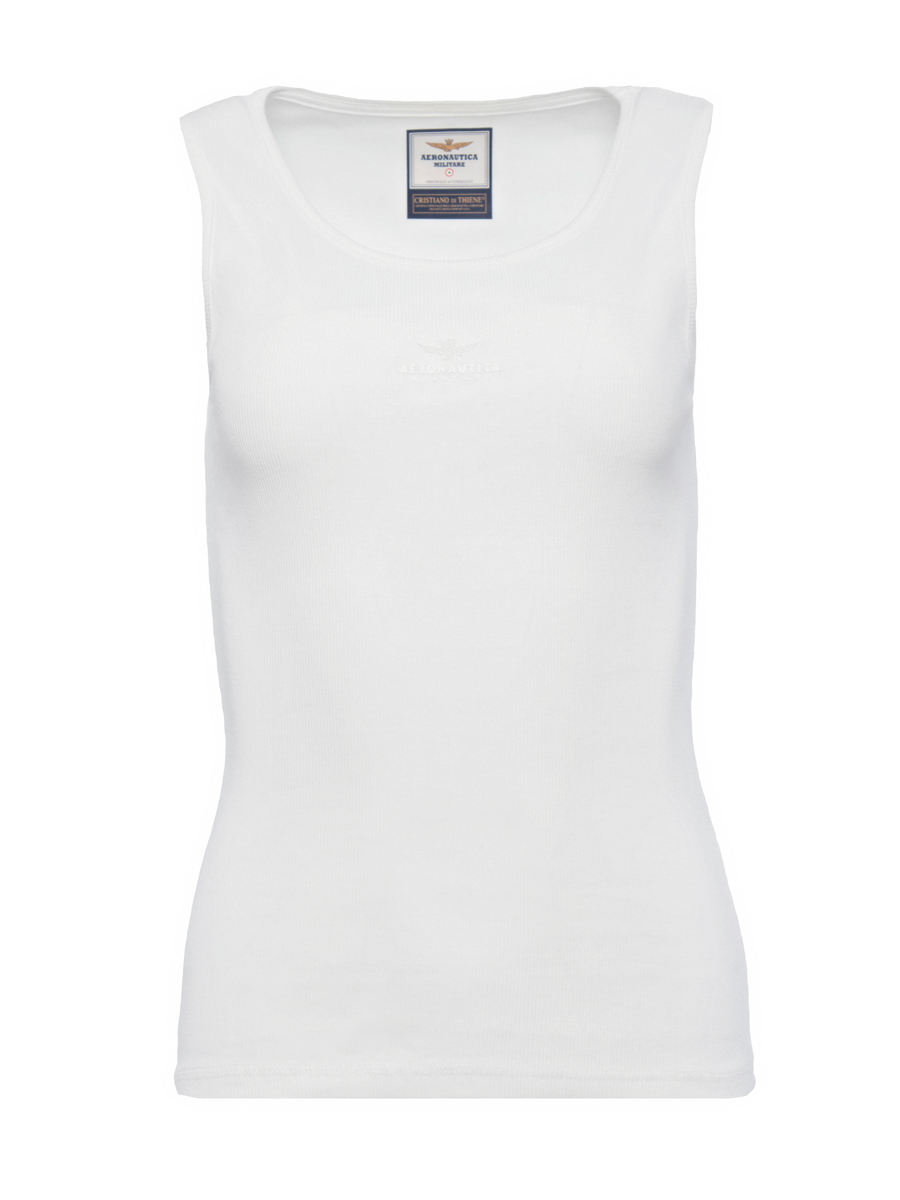 Топ в белом цвете из эластичного трикотажа с лого на груди Aeronautica Militare