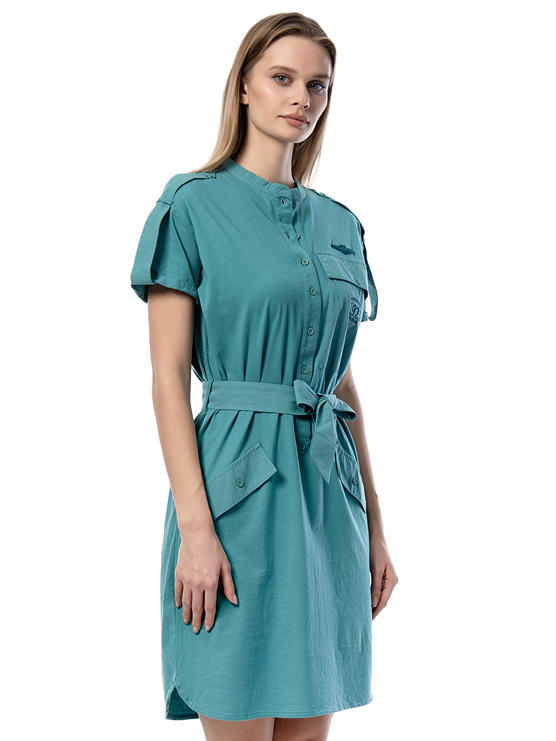Платье в бирюзовом цвете Aeronautica Militare с коротким рукавом и съемным поясом