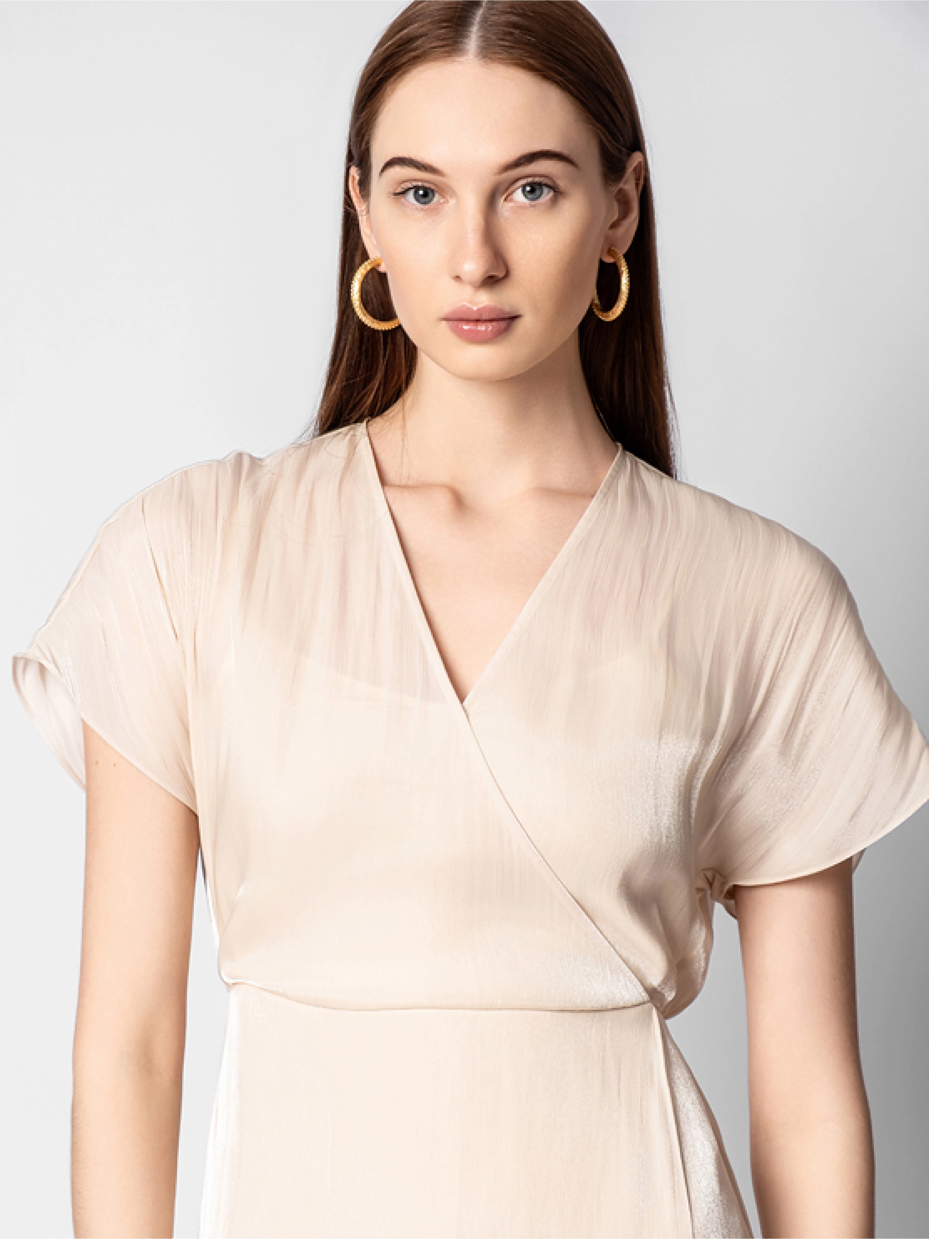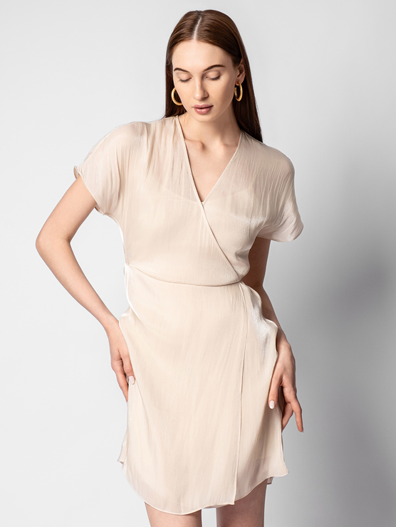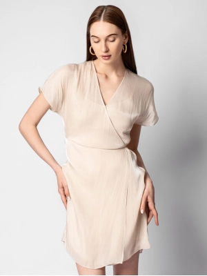 Платье длины мини бежевого цвета с запахом и коротким рукавом Armani Exchange