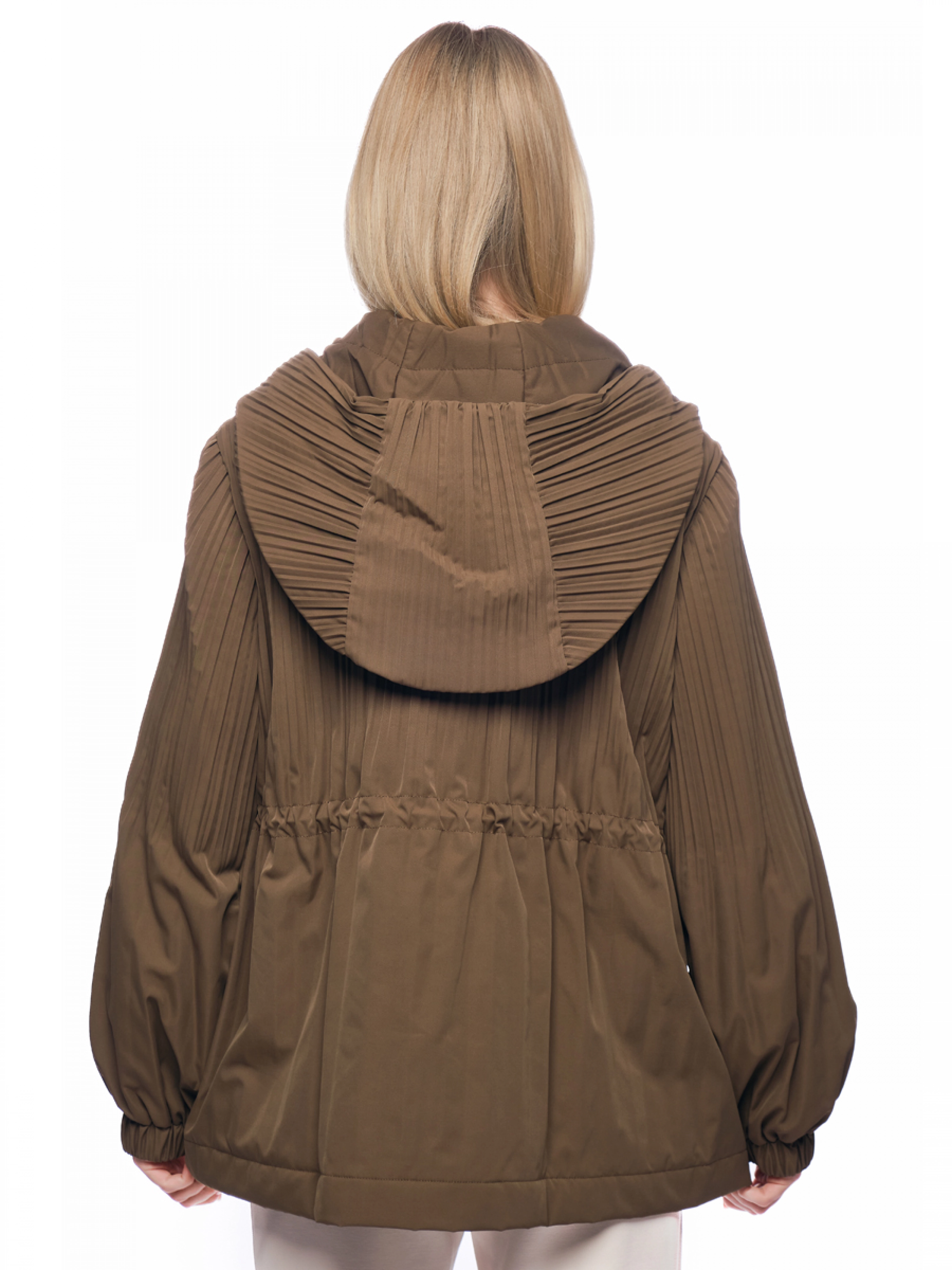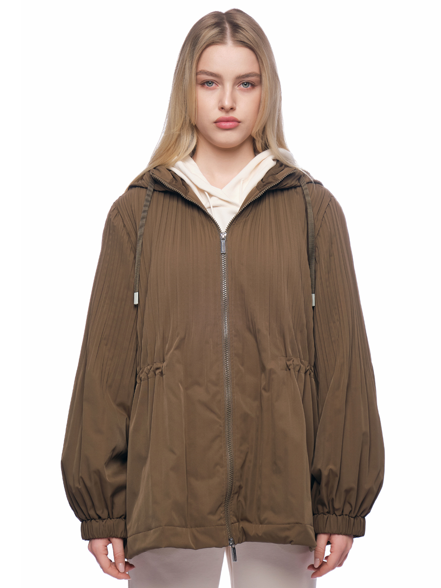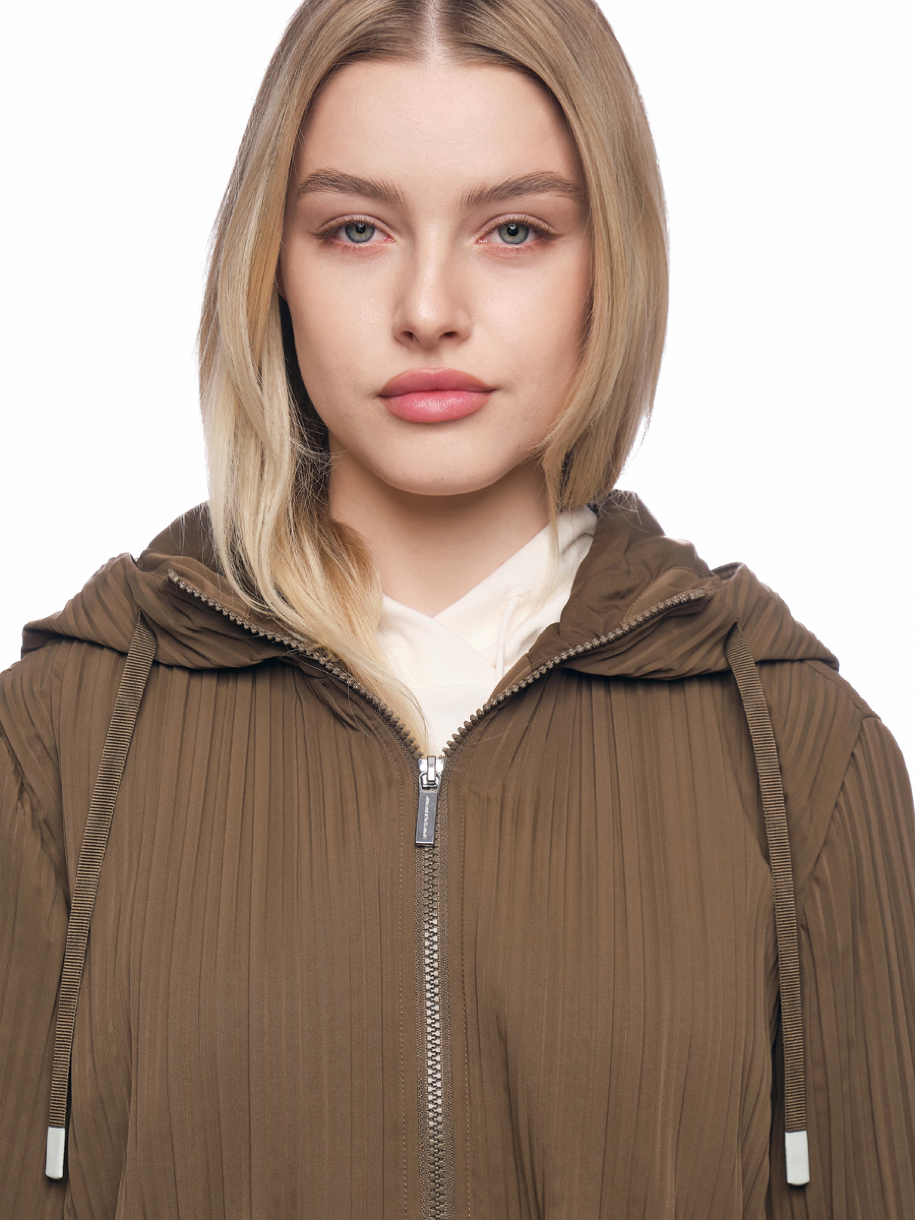Куртка-ветровка в цвете хаки прямого кроя с кулиской на поясе и с капюшоном Armani Exchange