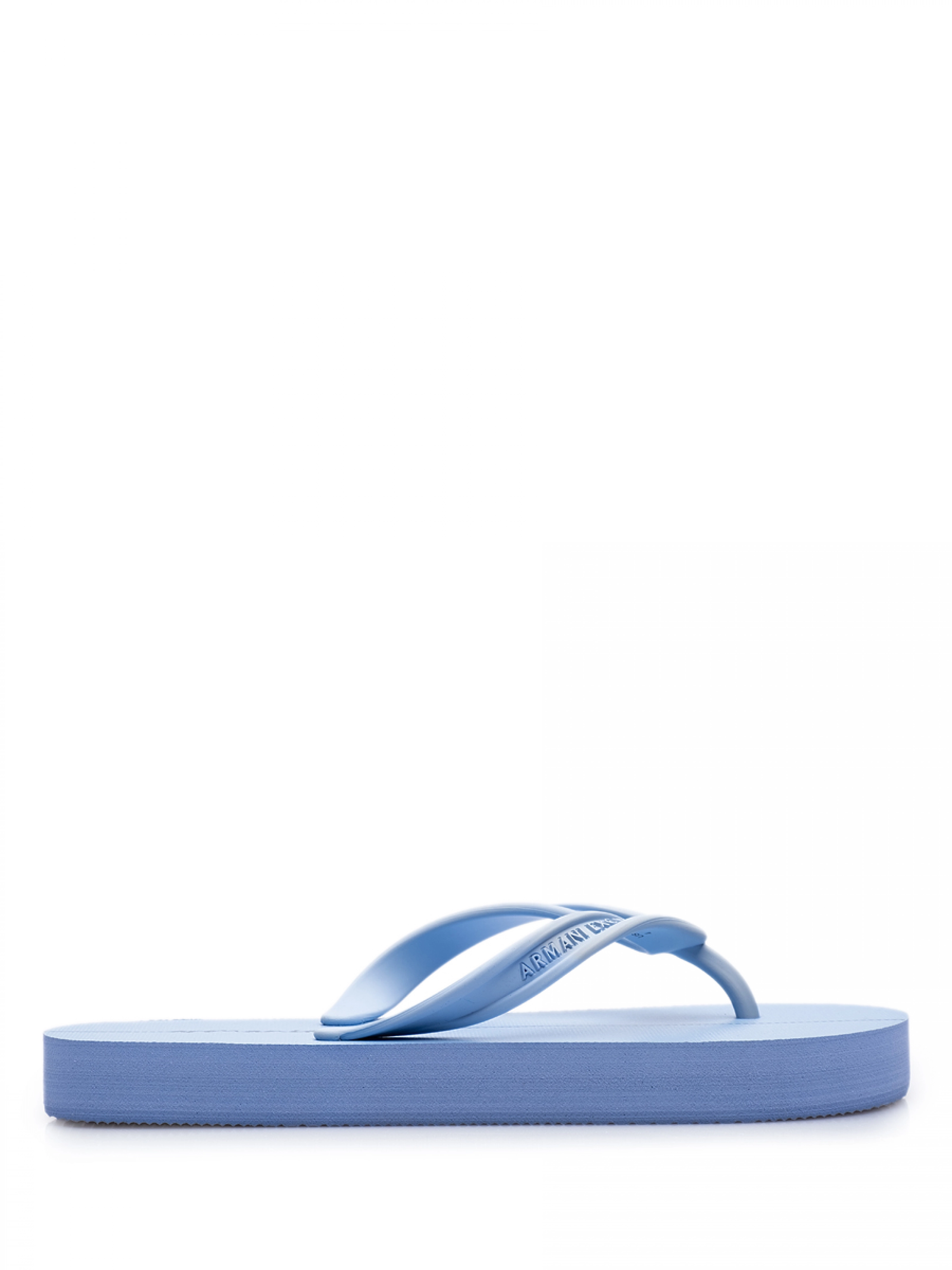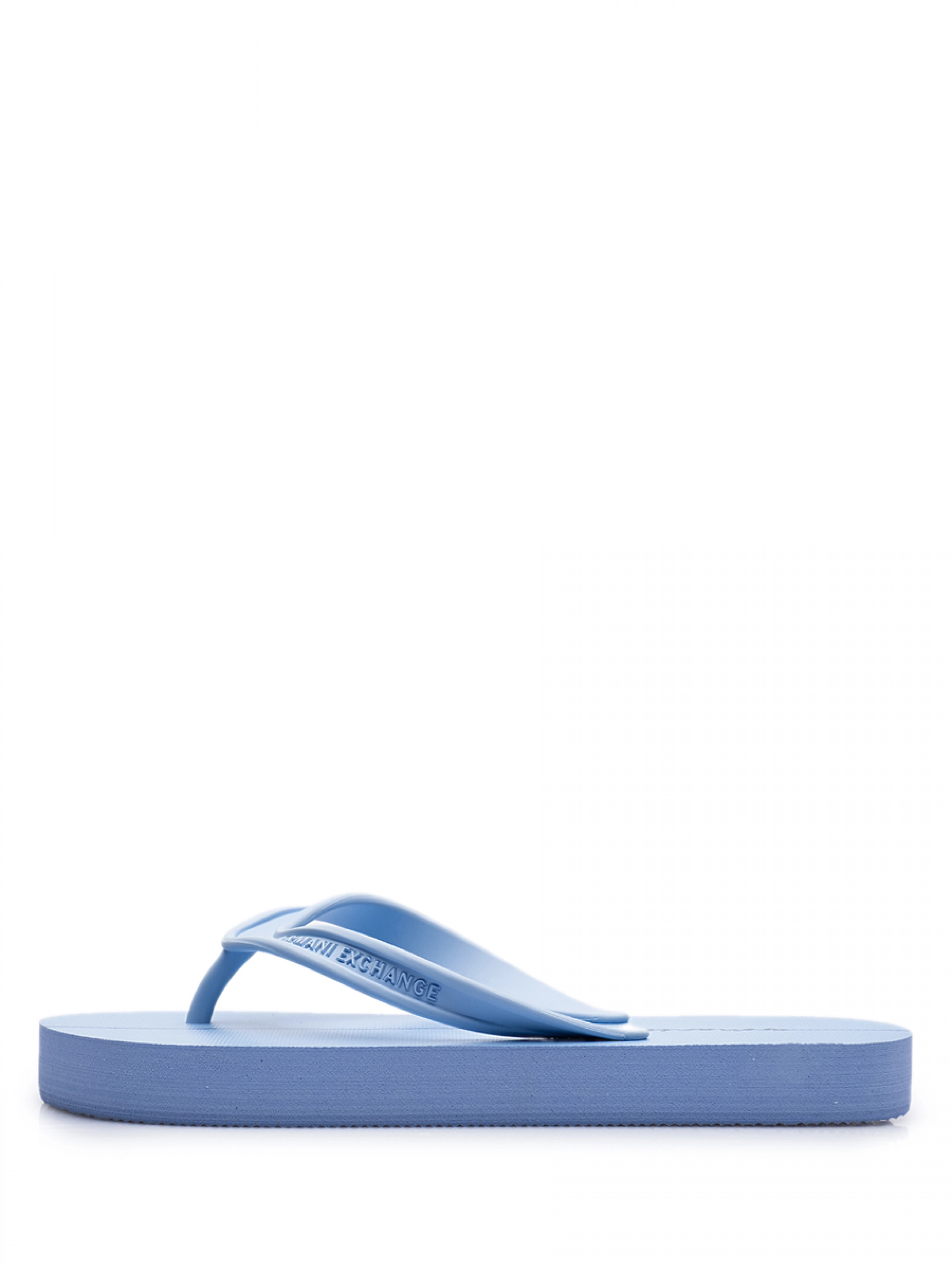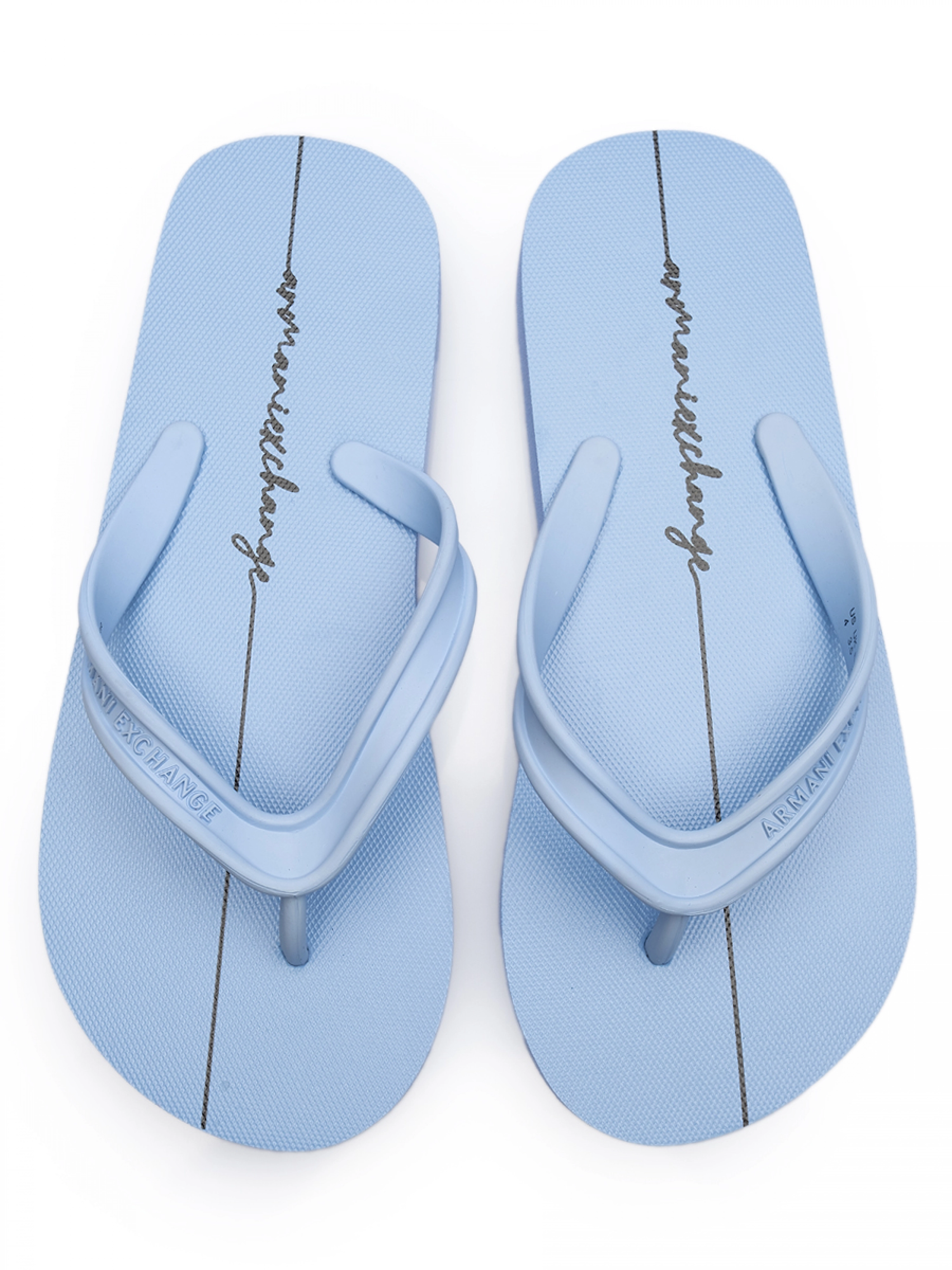 Сланцы голубого цвета с надписью лого бренда Armani Exchange