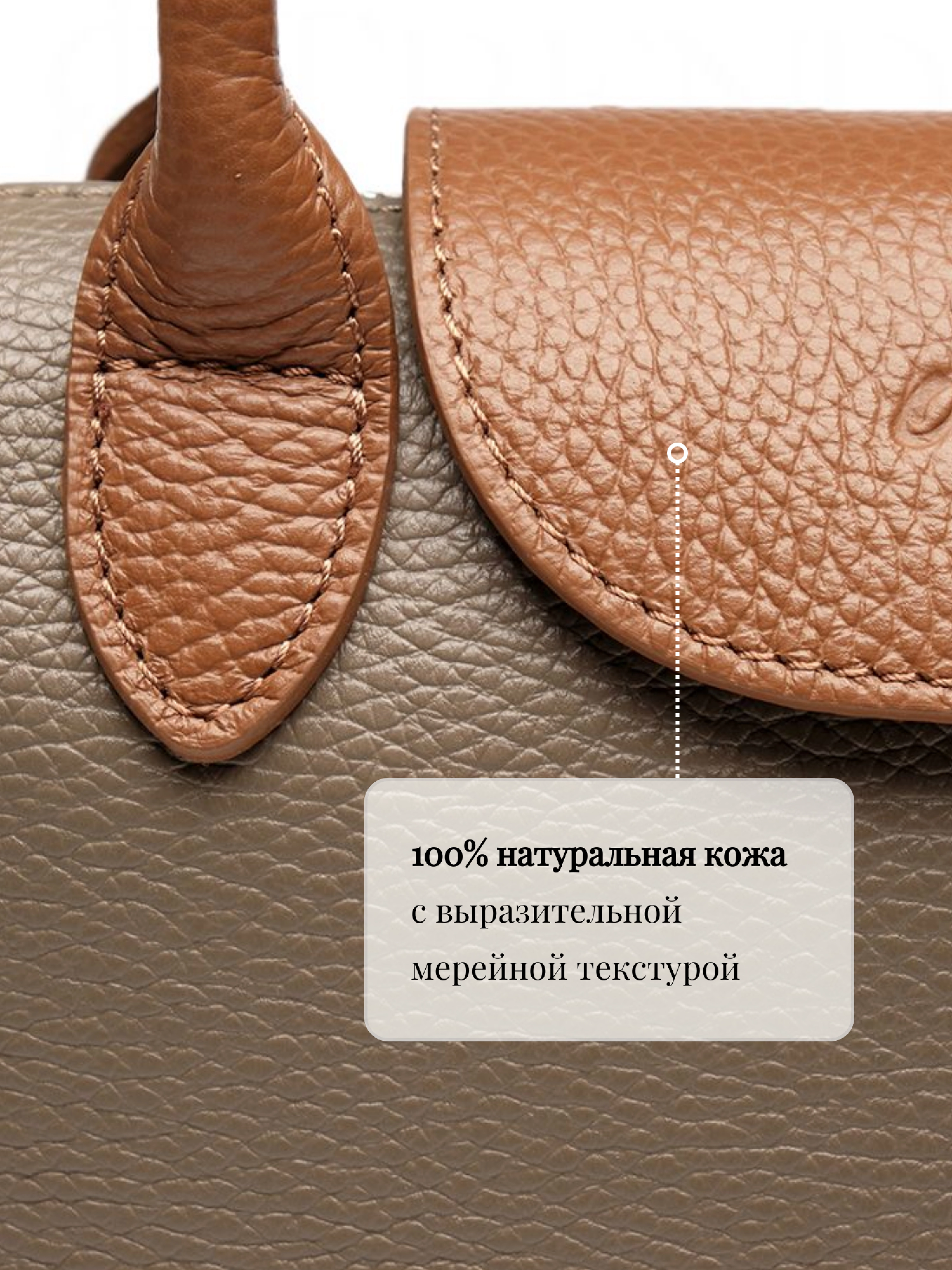 Моя кожа — 100% шагреневая, итальянская. А мои контрастные рыжие ручки — мой акцент. Не тренд, а характер.