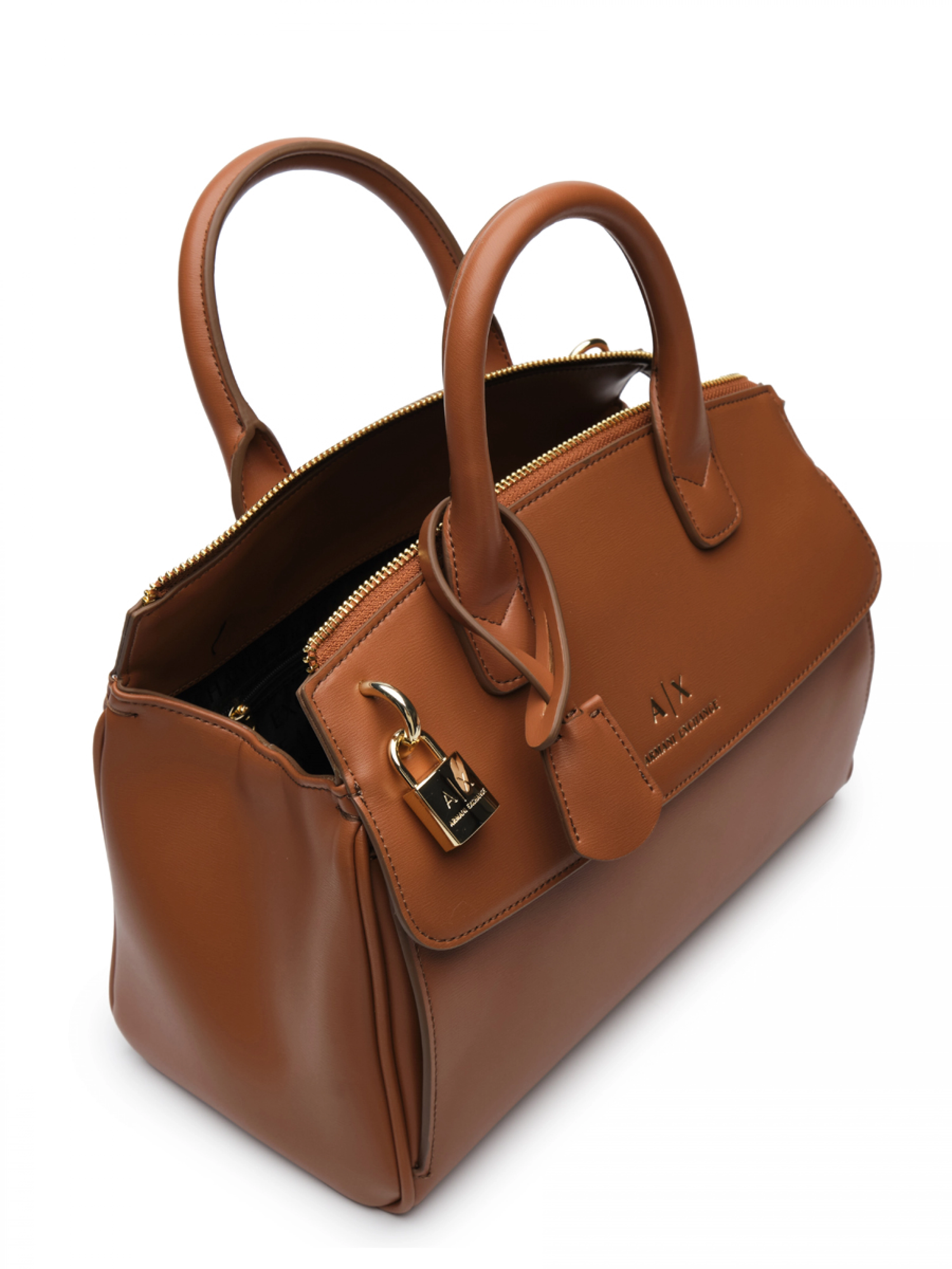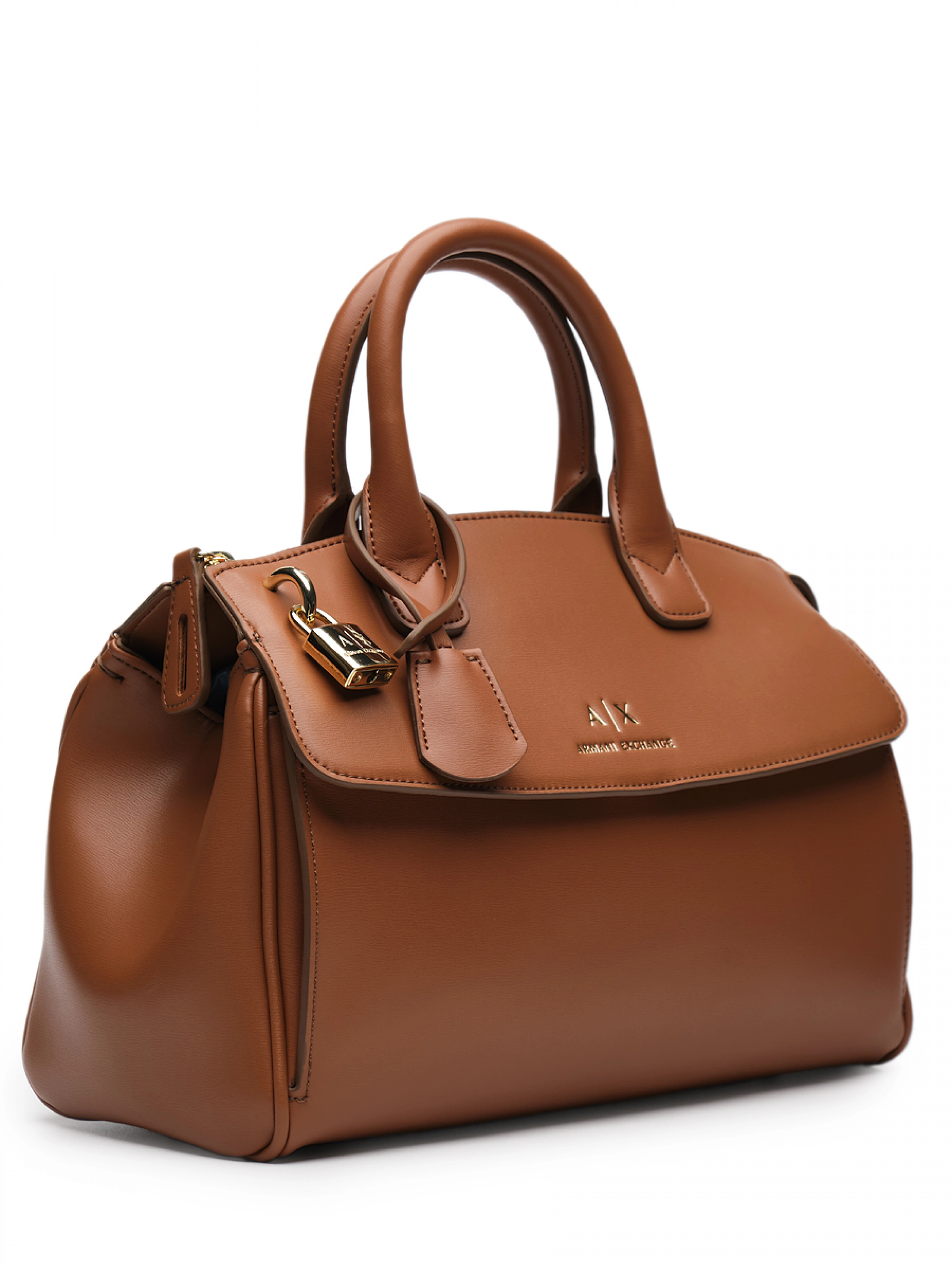 Сумка-тоут в коричневом цвете с ручками и брелоком Armani Exchange